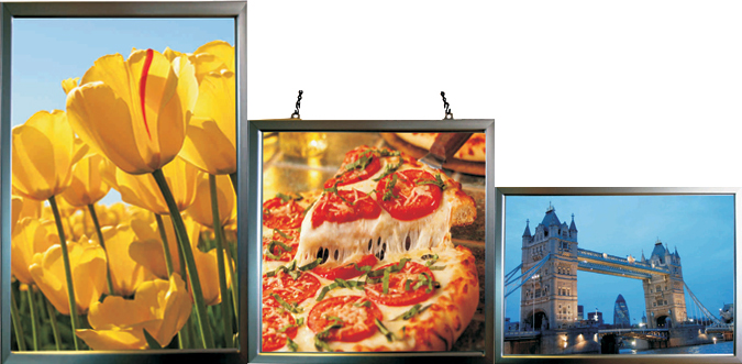 Change the graphics in your LED Light Box in a snap by simply opening spring loaded snap frame on each side!